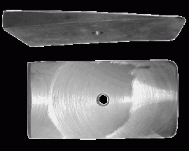 This shim is 6 degrees by 2.5″ wide. The mounting hole is 5/16″ diameter and may be drilled out to fit other sizes.